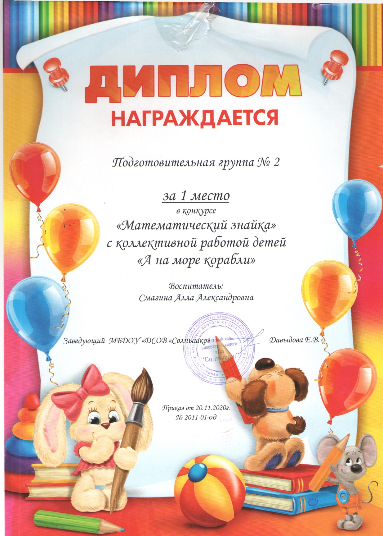 Грамота победителя в смотре-конкурсе за лучшее оформление группы к Новому году "Зимняя сказка".